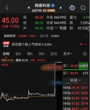 A股收盘最后5分钟,闻泰科技突然直线拉升!
